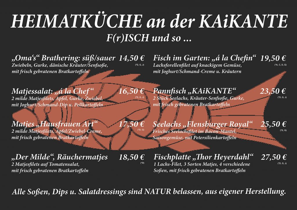 Speisekarte – Fisch essen in Kiel